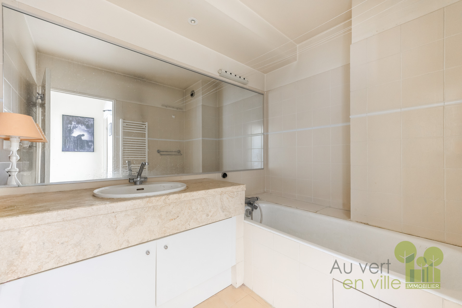 La partie nuit comprend deux grandes chambres de 12,75m2 avec placards intégrés, au calme sur cour intérieure, une salle de bains avec baignoire et un WC indépendant.